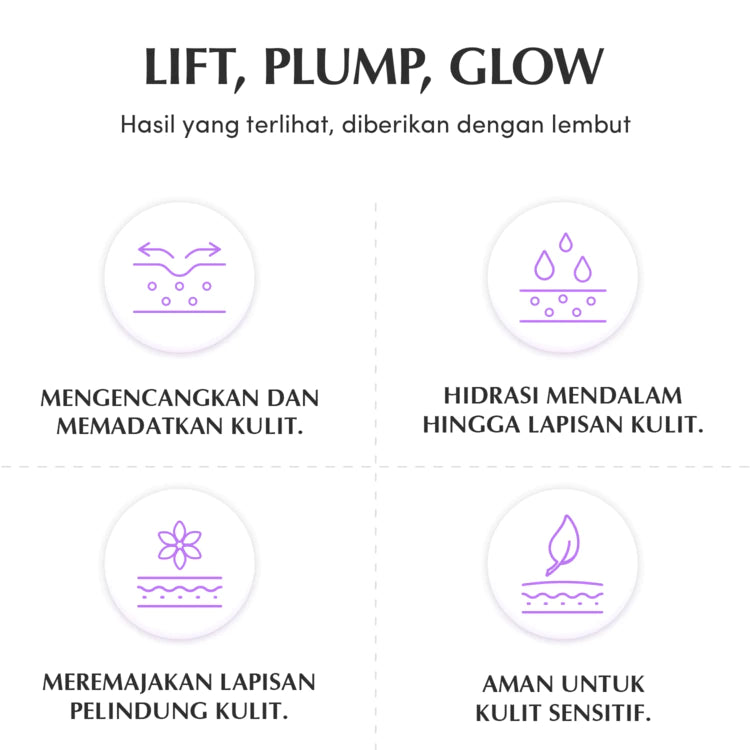 - Promotes collagen production, improving skin firmness and enhancing volume