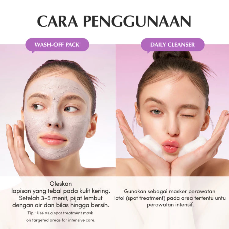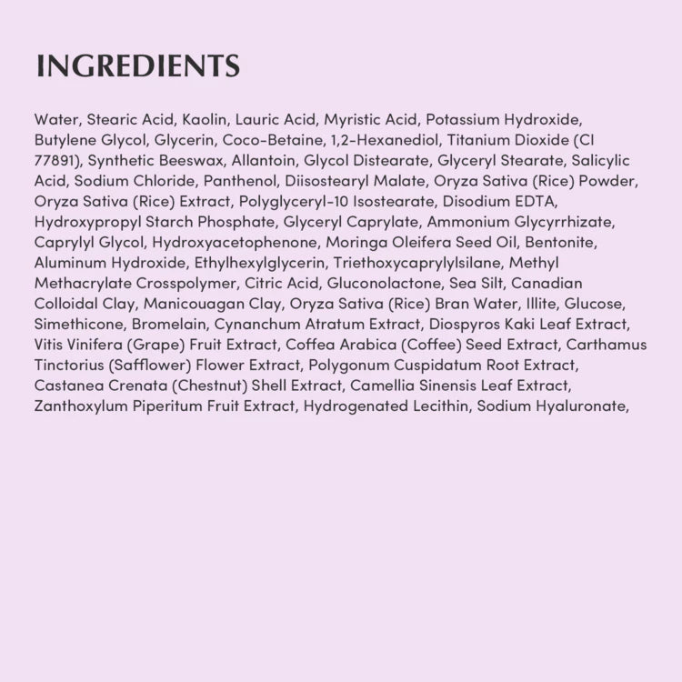 - Purple Rice Complex and 6 types of clay absorb impurities and excess sebum, remove blackheads, refine pores, and smooth the skin for better skincare absorption.