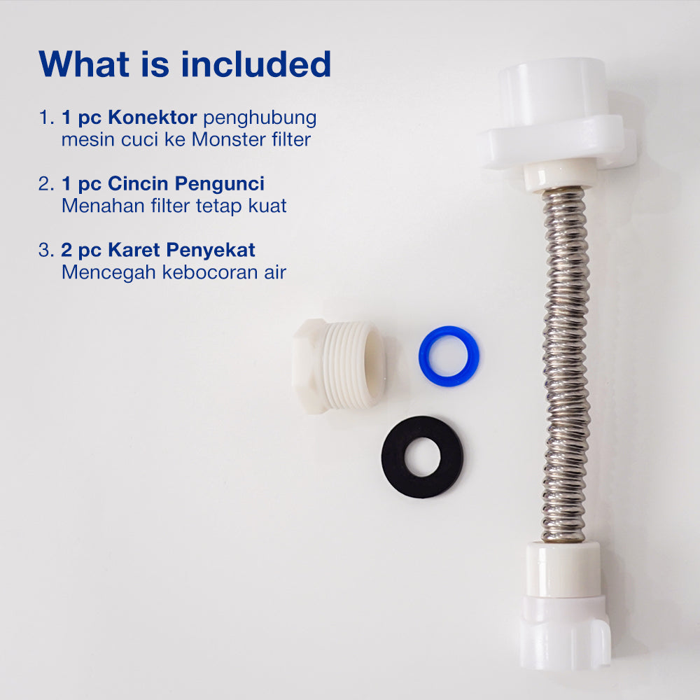 1. Konektor Selang – Untuk menghubungkan Monster Filter ke Mesin Cuci